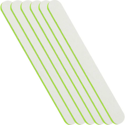 6 limes New & Beauty droites blanches 100/180, montées sur mousse, collées sur plastique vert.