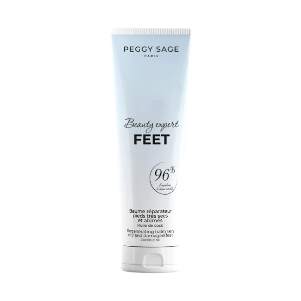 Baume réparateur pieds très secs et abîmés Huile de coco Peggy Sage améliore le confort et répare les pieds abîmés, fendillés ou douloureux.